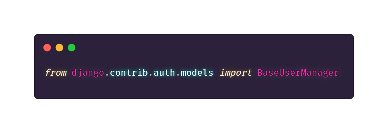 بعد یک کلاس به اسم CustomUserManager میسازیم و در این کلاس از کلاسی که در بالا import کردیم ارث بری میکنیم.