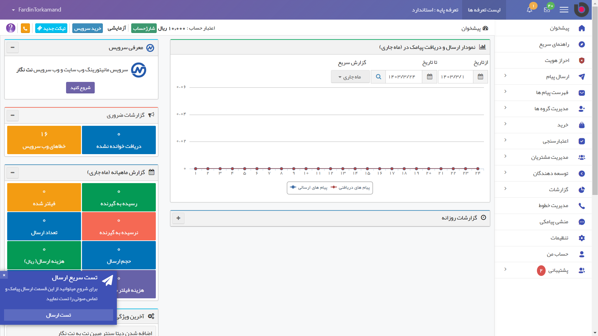 بهتره تا یادم نرفته اینو بگم که اگه سرویسی خریداری نکردین و فقط میخواین در حد تست استفاده کنین باید پیامک های تبلیغاتی خطتتون باز باشه چون شماره سرویسی که ازش میخوایم استفاده کنیم و فقط حق استفاده از همین رو تا قبل احرازهویت داریم سرشماره تبلیغاتی محسوب میشه و این سرشماره ها معمولا بلاک میشن